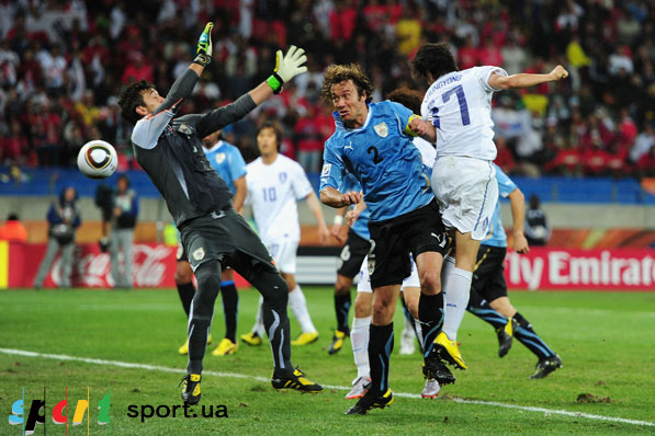 В первом тайме в атаке у корейцев получалось немного. Перерыв они провели в полезном изучении этого обстоятельства под руководством тренера и на второй тайм вышли, уже четко зная, что и как делать. И теперь уже Уругваю пришлось тяжело. Всю первую половину тайма моменты возникали только в уругвайской штрафной. Прострелы и навесы становились очень опасными благодаря напористости атакующих игроков, карауливших каждый отскок, неудачный вынос защитников. Штрафная Уругвая стала очень насыщенной и скорость корейского перемещения в ней начала создавать серьезные проблемы. После неудачной игры защитника в центре штрафной на убойной позиции оказался Парк Чу Юн. Этот парень неплохо забивает во французском чемпионате за «Монако», но на ЧМ-2010 ему не везет. Забил только раз, а сколько мог...- Вот и в этом эпизоде второй Парк (первый играет за «МЮ») лупанул выше ворот.