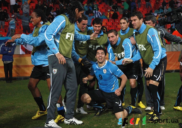 Уругвай - Южная Корея - 2:1Порт Элизабет. Стадион «Nelson Mandela Bay»Уругвай: Муслера, Годин (Викторино, 46), Лугано, Перес, А.Перейра (Лодейро, 74), М.Перейра, Фусиле, Аревало, Кавани, Форлан, Суарес (Фернандес, 84)Южная Корея: Сунг Рионг Джунг, Янг Пйо Ли, Ен Хен Чо, Парк Джи Сунг, Сон Ен Ки (Ги Хон Ем, 85), Чжон Су Ли, Чжон У Ким, Чжэ Сон Ким (Дон Гук Ли, 61), Чу Юн Парк, Чун Юн Ли, Ча Ду РиАрбитр – Вольфганг Штарк (Германия)