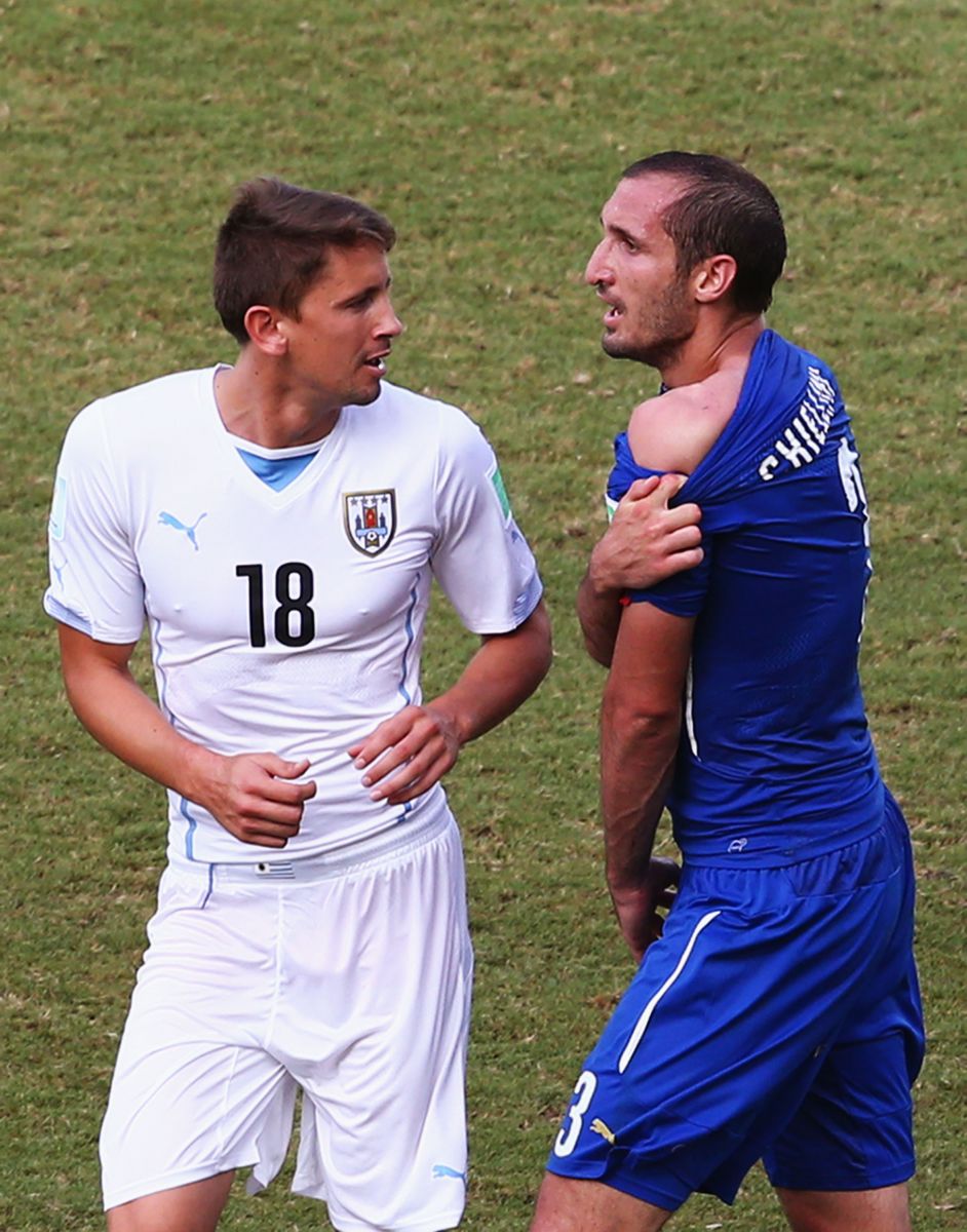 Во второй половине игры многое решил эпизод с удалением Клаудио Маркизио. Арбитр из Мексики Марко Родригес лишь продолжил серию ошибок судей из Азии и Южной Америки, показав полузащитнику «скуадры» вымышленное удаление. А вот в эпизоде со смертельным укусом Суареса, который уже опробовал на себе в свое время Бранислав Иванович, арбитр был безмолвен, хотя и увидел на плече Джорджио Кьеллини следы от зубов уругвайца.![]()